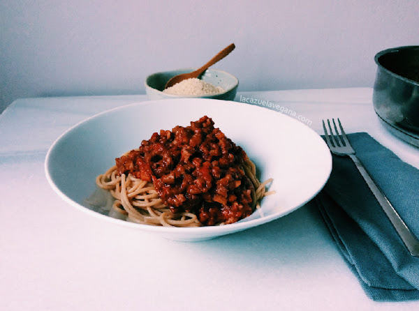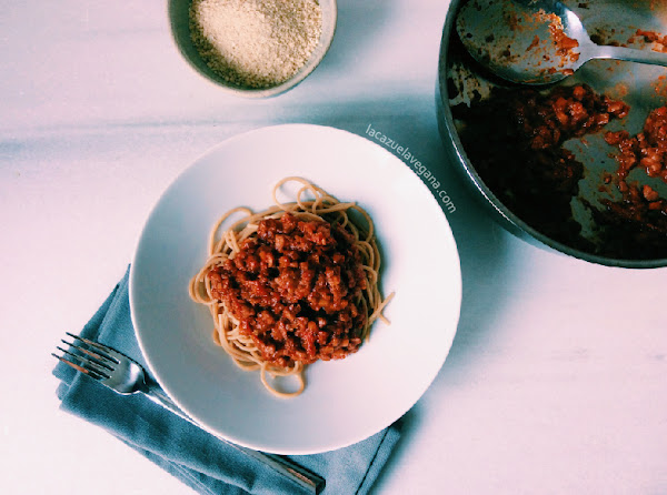 Salsa boloñesa vegana con soja texturizada
