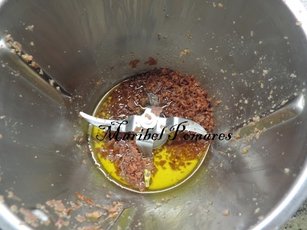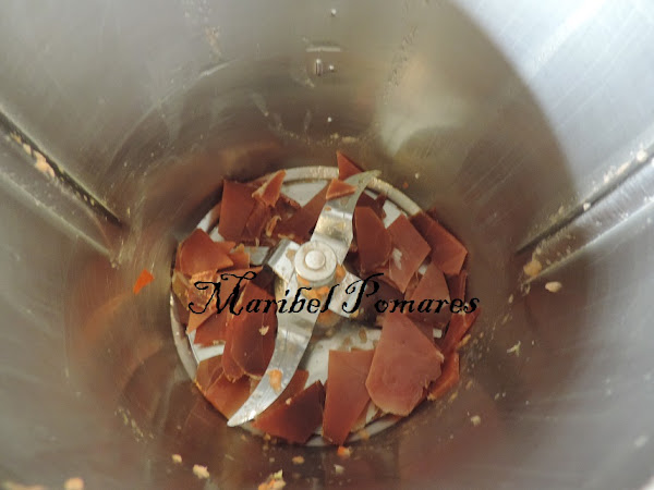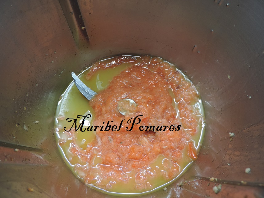 Ponemos el aceite de escurrir el jamón en el vaso del thermomix.