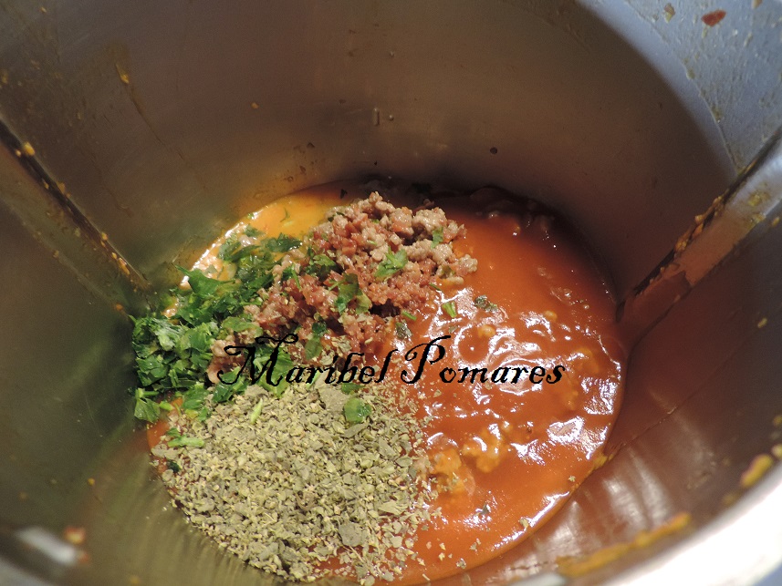 La salsa de tomate, perejil picad y orégano.
