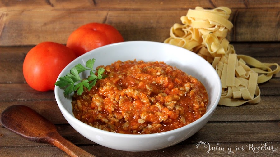 La salsa boloñesa es una salsa que se usa comunmente para acompañar pasta. Cuando acompaña un plato aparece como "a la boloñesa". Es muy espesa, de color rojo y sus ingredientes más comunes son la carne picada de ternera o buey, los tomates, zanahorias , cebollas...