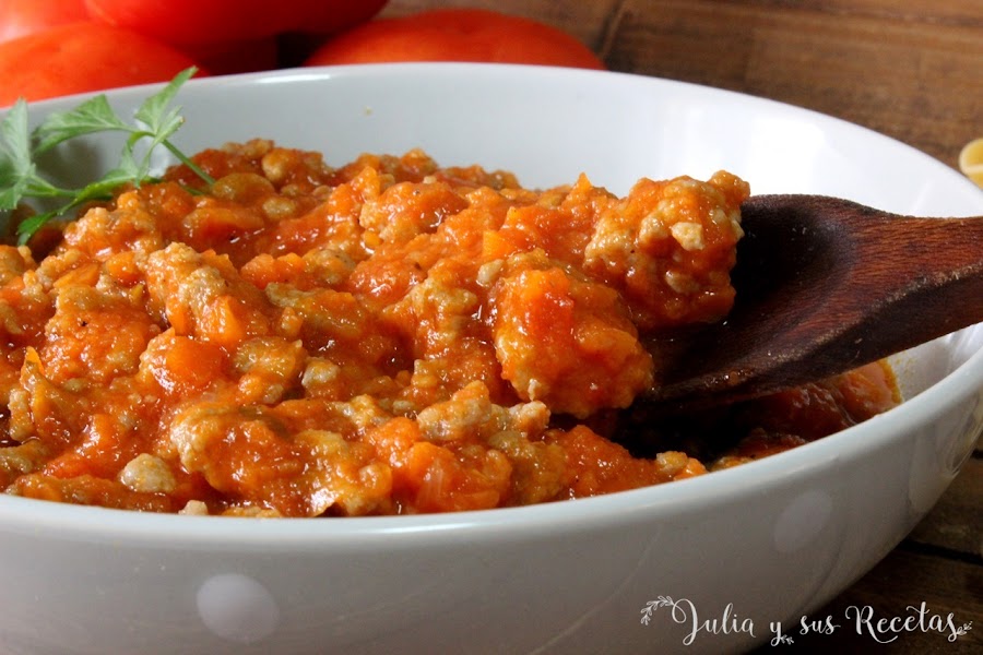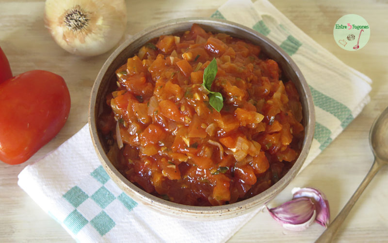¡Queda buenísima!Otra salsa que queda estupenda con la pasta es esta salsa de tomate casera que nos enseña el blog Entre 3 fogones.