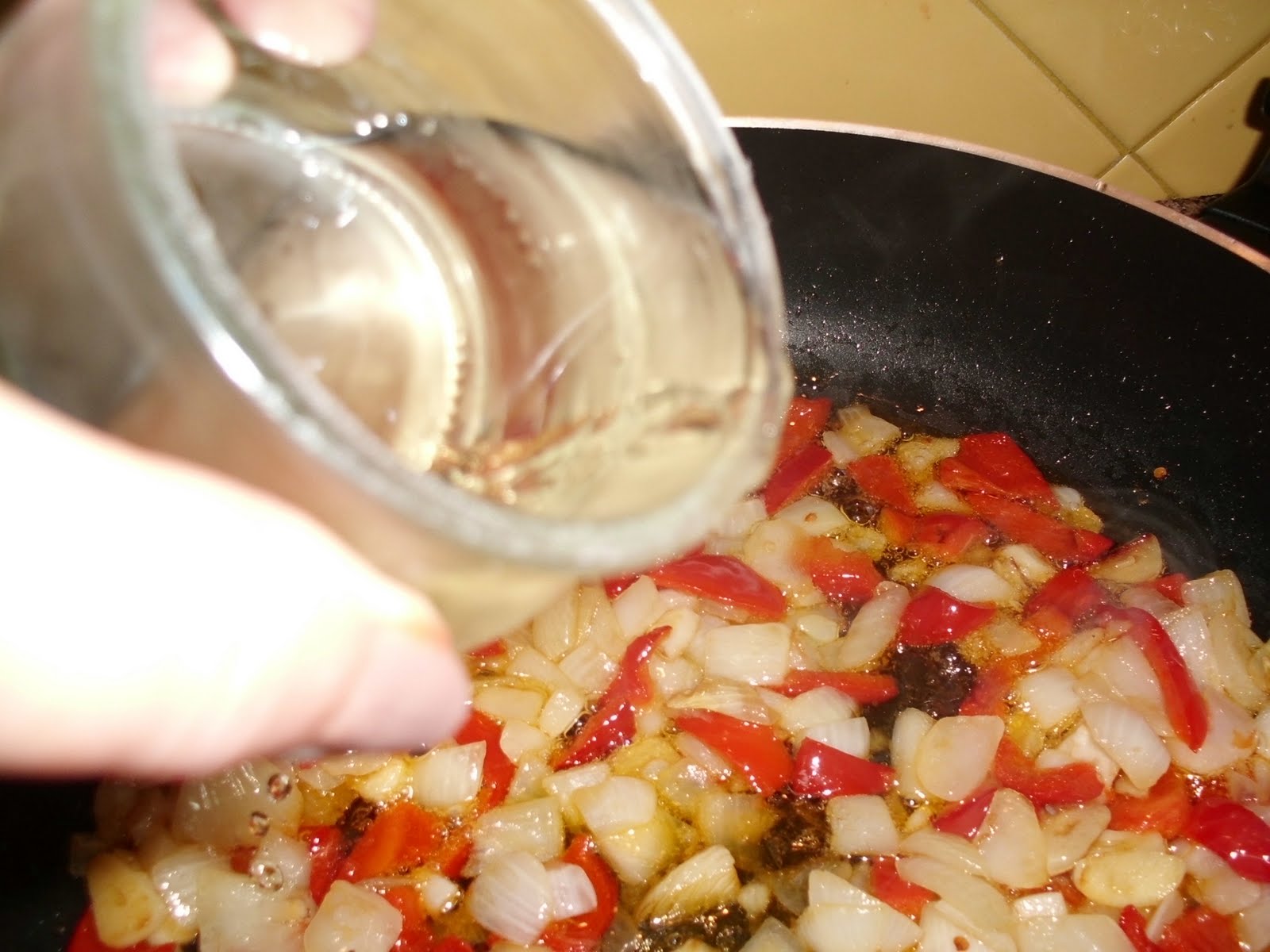 Cuando esten pochadas las verduras , les añadimos el vinagre y dejamos evaporar un poco
