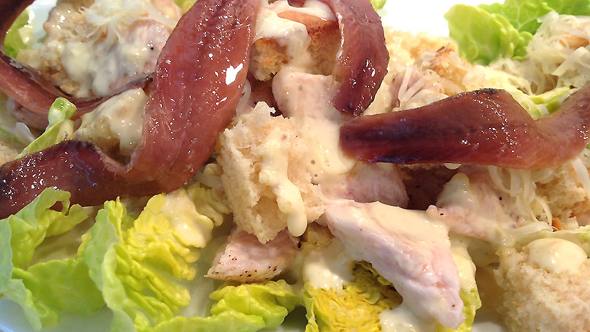 Esta es la ensalada César clásica. A mi me gusta añadirle unas anchoas.