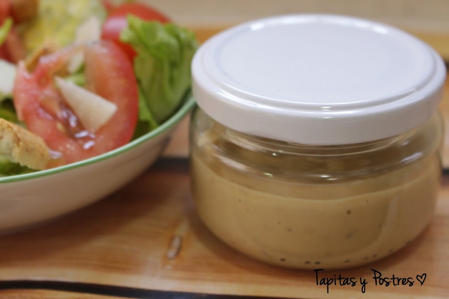 El hecho es que es una salsa muy calórica pero deliciosa y que convierte una sencilla ensalada en un plato de lujo. Pero no os limiteis a usarla en ensaladas, como condimento para carnes o pasta fría.. probad a usarlas en otros platos.