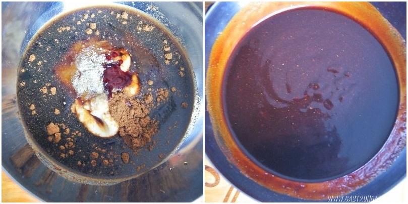 La cantidad resultante de esta receta es muy aproximada al peso que traen los envases que se comercializan con esta salsa, ahora bien, no es obligatorio usar el colorante alimenticio pero si es una práctica muy habitual, que al asar el cerdo con la salsa le aporta un rojo característico claramente marcado en los bordes de la carne, inconfundible señal de que esa carne ha sido asada con la gran salsa Char siu.Imprimir