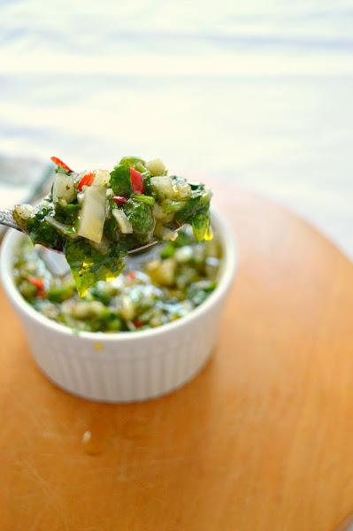 Por ahora, os dejo la receta del chimichurri , adaptada del blog de Laylitas Recipes. Espero que os guste.