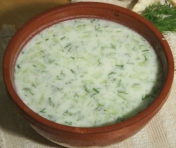 Poner en un bol, el yogurt, el eneldo, el zumo del medio limón, una pizca de ajo en polvo y pimienta, una cucharadìta de las de café de aceite y un poco de sal.