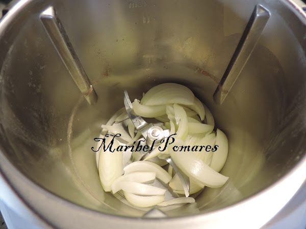 Ponemos la cebolla cortada en el vaso del thermomix.
