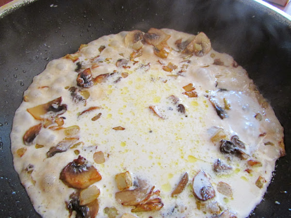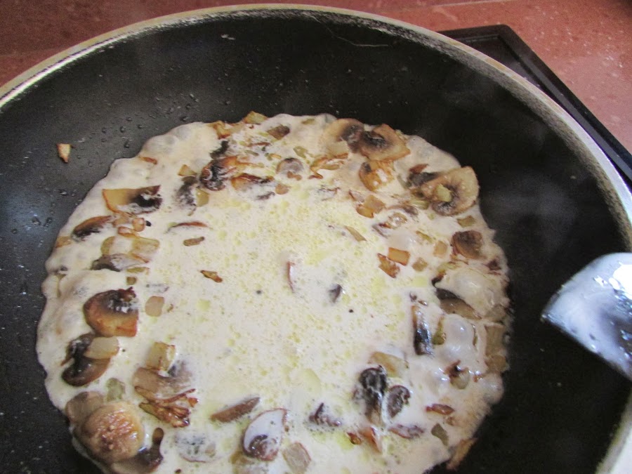 Echamos la nata (crema de leche) liquida y lo dejamos cocer unos minutos, hasta que reduzca.