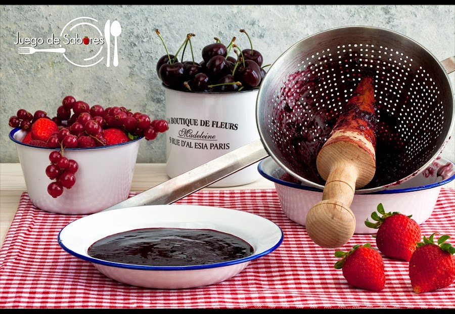 Somos esclavos de los dictados de la moda. Cuatro diseñadores se reúnen y te dicen cómo y de qué color te vas a vestir dentro de un año y todos, como borreguitos, pasamos por caja y nos dejamos unos cuantos euros para que nuestras amistades no nos tachen de "demodées", lo pongo así, en francés, porque queda más chic. Pues bien, queridos consumidores, tenéis que saber que por muchos dictadores de la moda que haya, la Naturaleza ?sabia entre las sabias- sigue sus propios caminos y criterios, y cuando llega la primavera o el verano el campo y el bosque se llena de pequeñas pinceladas de color rojo, un color que "se lleva siempre" y que corresponde a una serie de frutos (frambuesas, grosellas, fresas, cerezas) que llevan de cráneo a insectos, pájaros y humanos. Muchos de estos frutos rojos tienen un origen silvestre, pero con los años han pasado a ser cultivados por el hombre. Aprovechándonos de esta explosión de rojos, hemos elaborado una salsa sencilla que puede serviros para acompañar ensaladas, postres y carnes de cerdo, pato o caza.
