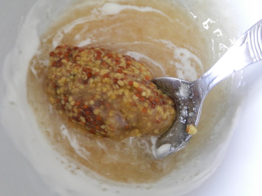Agregar ahora la cucharada de mostaza y batimos bien.