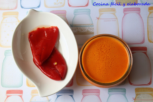 Fácil a más no poder. En un vaso de batidora ponemos los pimientos escurridos y la nata (crema de leche) (crema de leche). Lo batimos a máxima potencia durante 20 segundos. Lo pasamos a un cazo a fuego fuerte y cuando hierva, bajamos al mínimo y dejamos cocer durante 15-20 minutos, removiendo de vez en cuando para que no se pegue. Dejamos enfriar y probamos, si os gusta un toque más de sabor, puedes ponerle un poco de sal y pimienta.