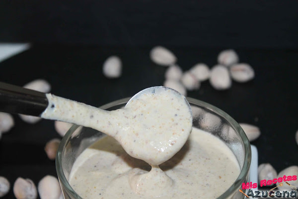 Dicho todo esto, es evidente que traigo una salsa... esta es de pistachos, es la primera vez que la he preparado y comido, la verdad es que nos gustó mucho en casa, mi hija que es la que ha salido a la mami en lo de las salsas, se la comía a cucharadas, si os gustan los pistachos, esta salsa os encantará.