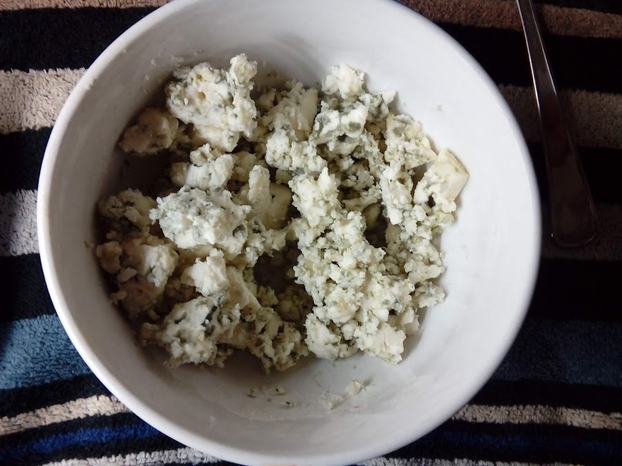 Desmenuzamos el queso azul en un bol o plato hondo con la ayuda de un tenedor.