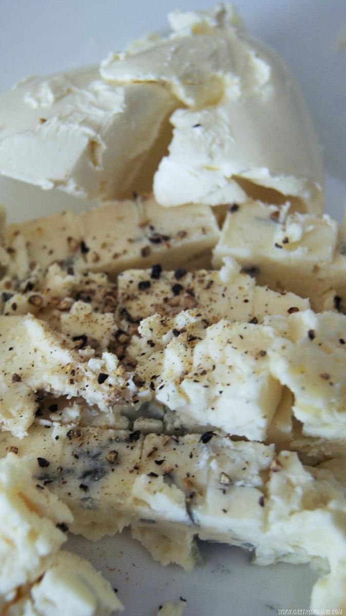 El queso Gorgonzola es el queso azul italiano por antonomasia, es original de la comuna de Gorgonzola en Milano y se comercializa en 3 versiones, bianco (blanco) suave y sin manchas de mohos, Dolce (dulce) con buen equilibrio de intensidad de sabor e ideal para esta receta y Piccante (¿Traduzco? ¿En serio?) con muchos hongos, profundidad de sabor, claras notas picantes y todos están bajo régimen de D.O.P. (Denominación de Origen Protegida). Al igual que el queso Stilton (Reino Unido) Roquefort (Francia) Cabrales (España) solo por poner unos ejemplos, son quesos de aromas penetrantes y sabor punzante, algo picante e intenso, con un fondo ligeramente dulce que hace que lo adores o repugnes.