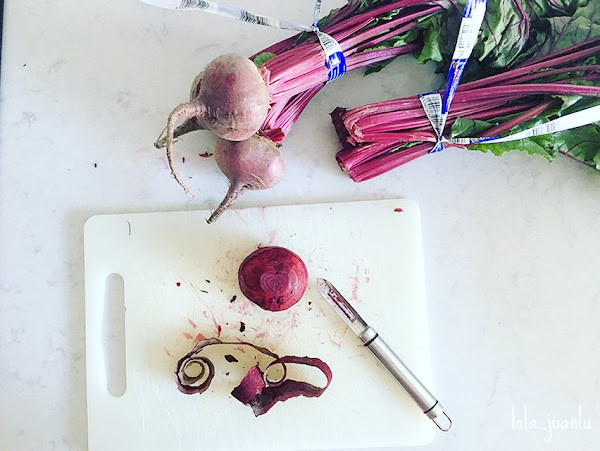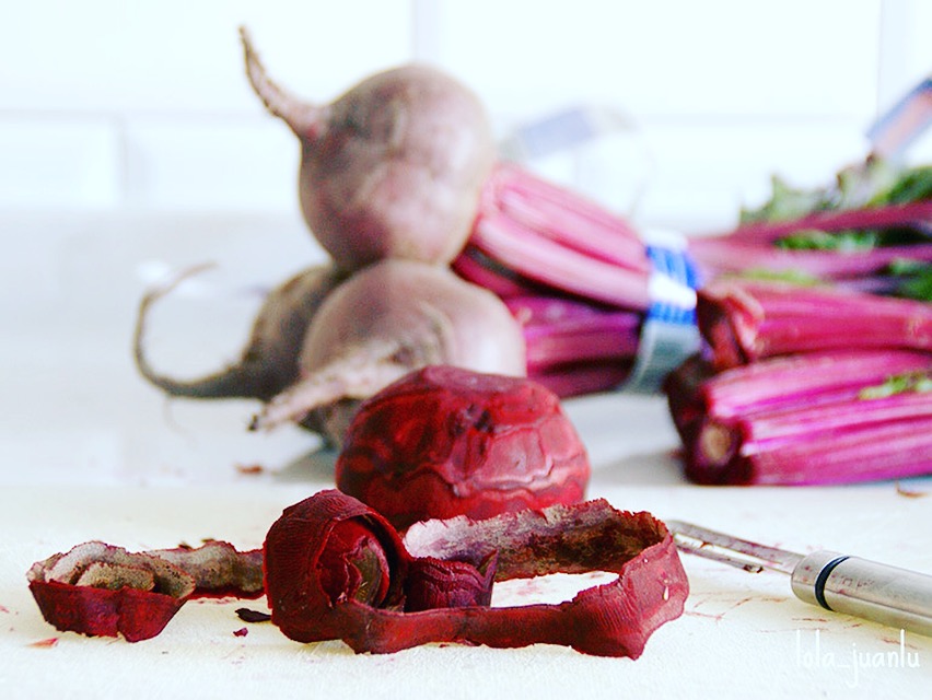 Pelamos las remolachas y las cortamos en trozos pequeños.