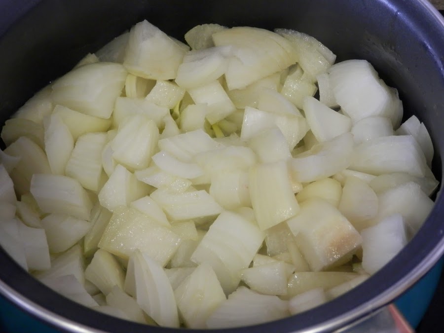 Ponla en un cazo, añade un poco de agua y un chorrito pequeño de aceite y deja pochar en su jugo a fuego lento y tapado durante al menos 30 minutos.