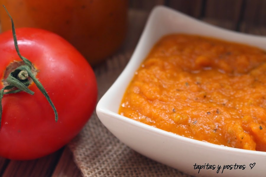 Queda muy espesa y de color anaranjado, si usamos tomate de lata nos saldrá mas roja.