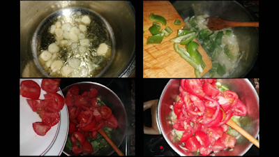 Dejamos pochar las verduras unos minutos, mientras lavamos y troceamos los tomates y los echamos