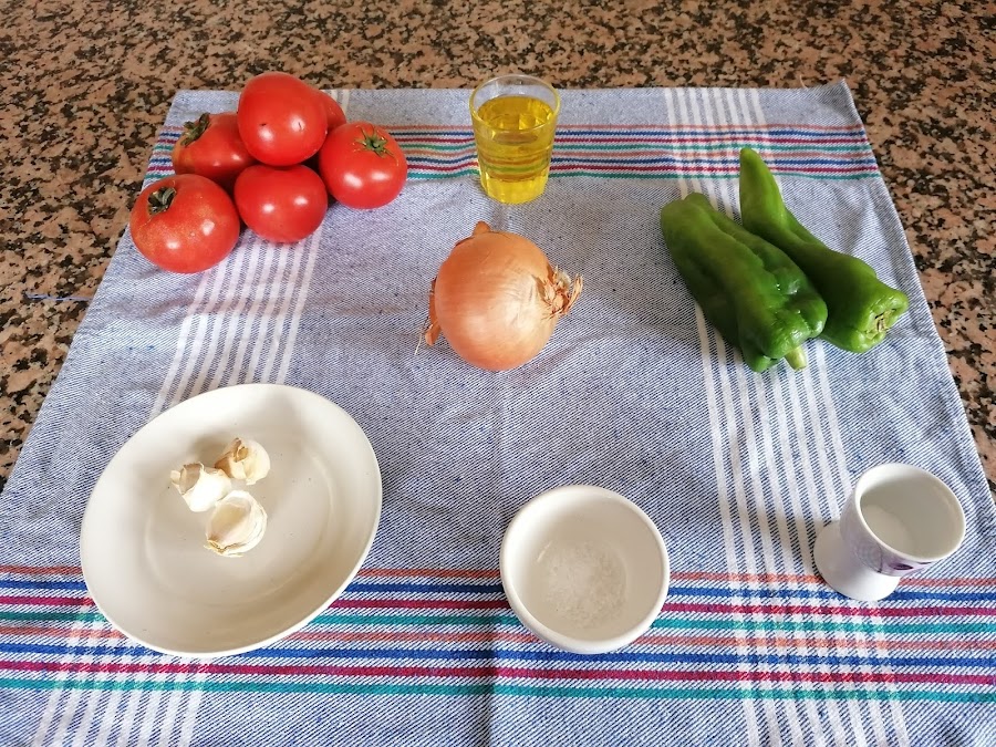 Ponemos la aceite en una cacerola y cuando esté caliente añadimos el ajo picado, a continuación la cebolla y el pimiento también picado.