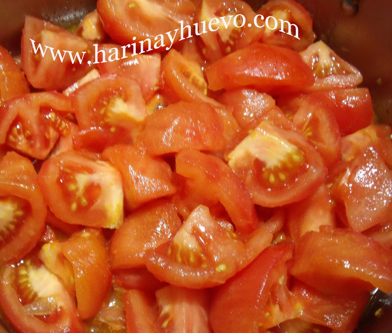 Como los tomates son bastante cantidad cuando los tengamos cortados las verduras ya estarán hechas. Así que las retiramos de la sartén y las ponemos en un recipiente. En la misma olla ponemos un dedo de aceite y echamos los tomates.