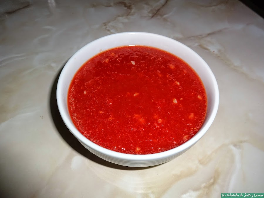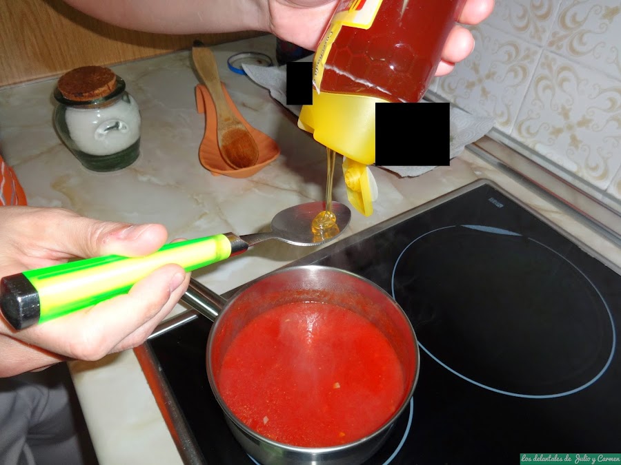 Como os contaba, la salsa que hoy os traemos, es el complemento a la receta de Espaguetis con albóndigas en salsa de tomate y miel, que ya tenéis a vuestra disposición. Carmen y yo usamos esta salsa para la receta que os comento, sin embargo, después de haberla probado, se vienen a la cabeza muchos otros platos con los que quedaría de maravilla, como puede ser para acompañar un pescado o carne a la plancha, o para preparaciones de pasta, ya que contiene el sabor del tomate con el añadido del punto de dulzura de la miel.