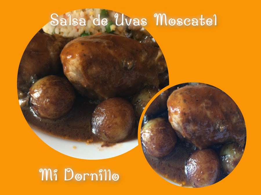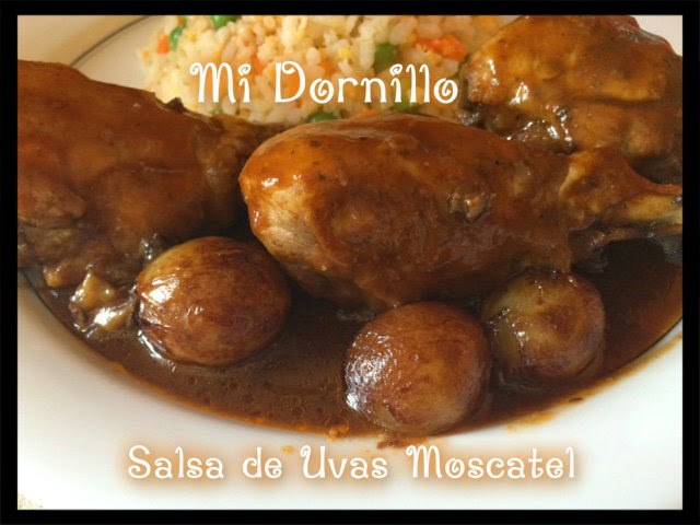 Con pollo es tan fácil como poner unos muslos en el horno a 200º , e ir bañado los muslos mientras que se doren con la salsa, os sorprenderá lo rico que esta.