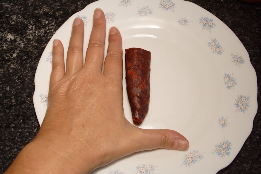 * Un trozo de chorizo, la cantidad que os parezca conveniente. en la foto podéis ver la cantidad que pongo.