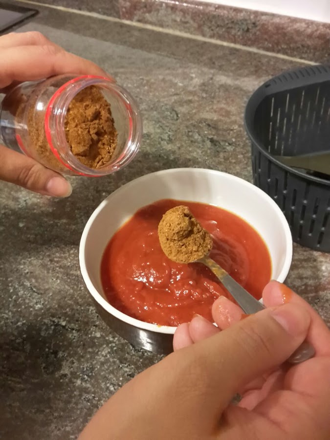 media cucharadita de café de salsa brava o tabasco (opcional, yo lo puse y estaba muy picante)