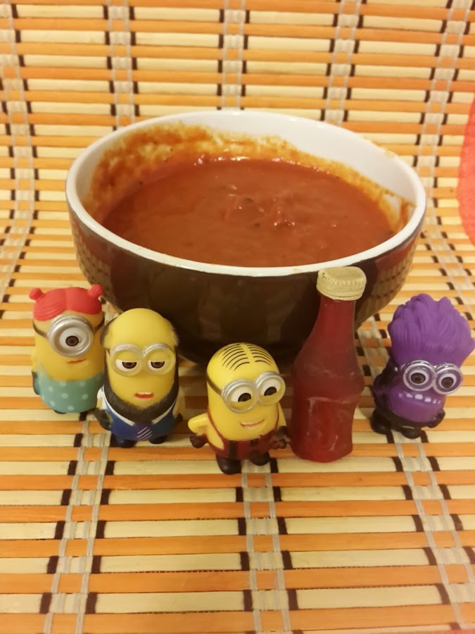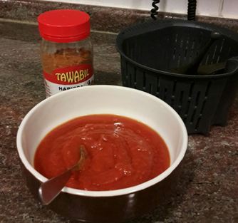 Es una salsa que tenía pendiente. Mis chicos me la habían pedido pero no les había hecho caso, porque a mi las cosas muy picantes, no me gustan. Pero bueno me puse a buscar y mirando, mirando por google, encontré varias maneras de hacerla. No me compliqué la vida, la mía es muy sencilla y muy picante. Tanto que tuve que mezclarla con la salsa blanca de yogur, para poder comerme la carne.