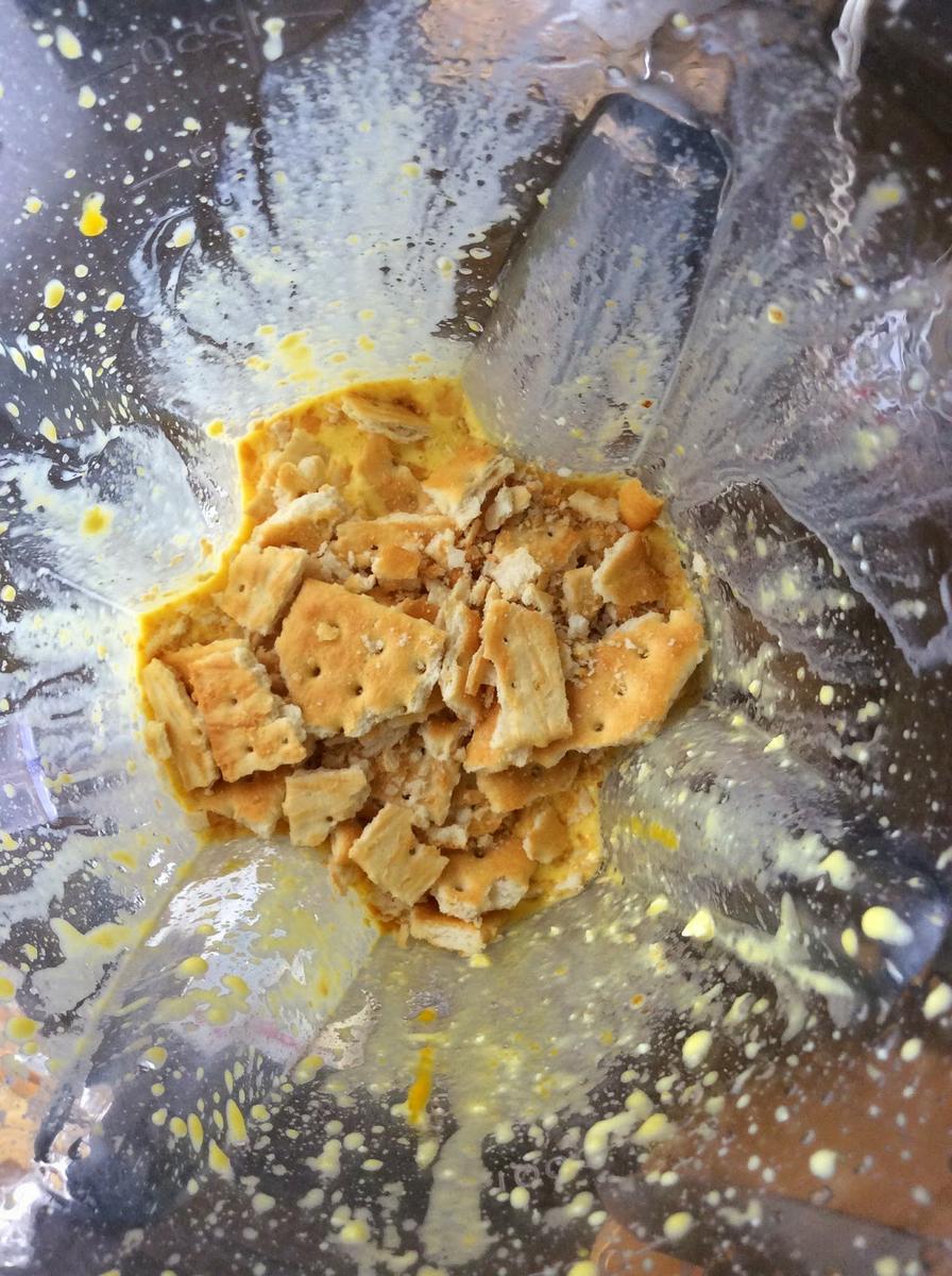 Añadimos los crackers y batimos hasta que obtengamos una salsa fina.