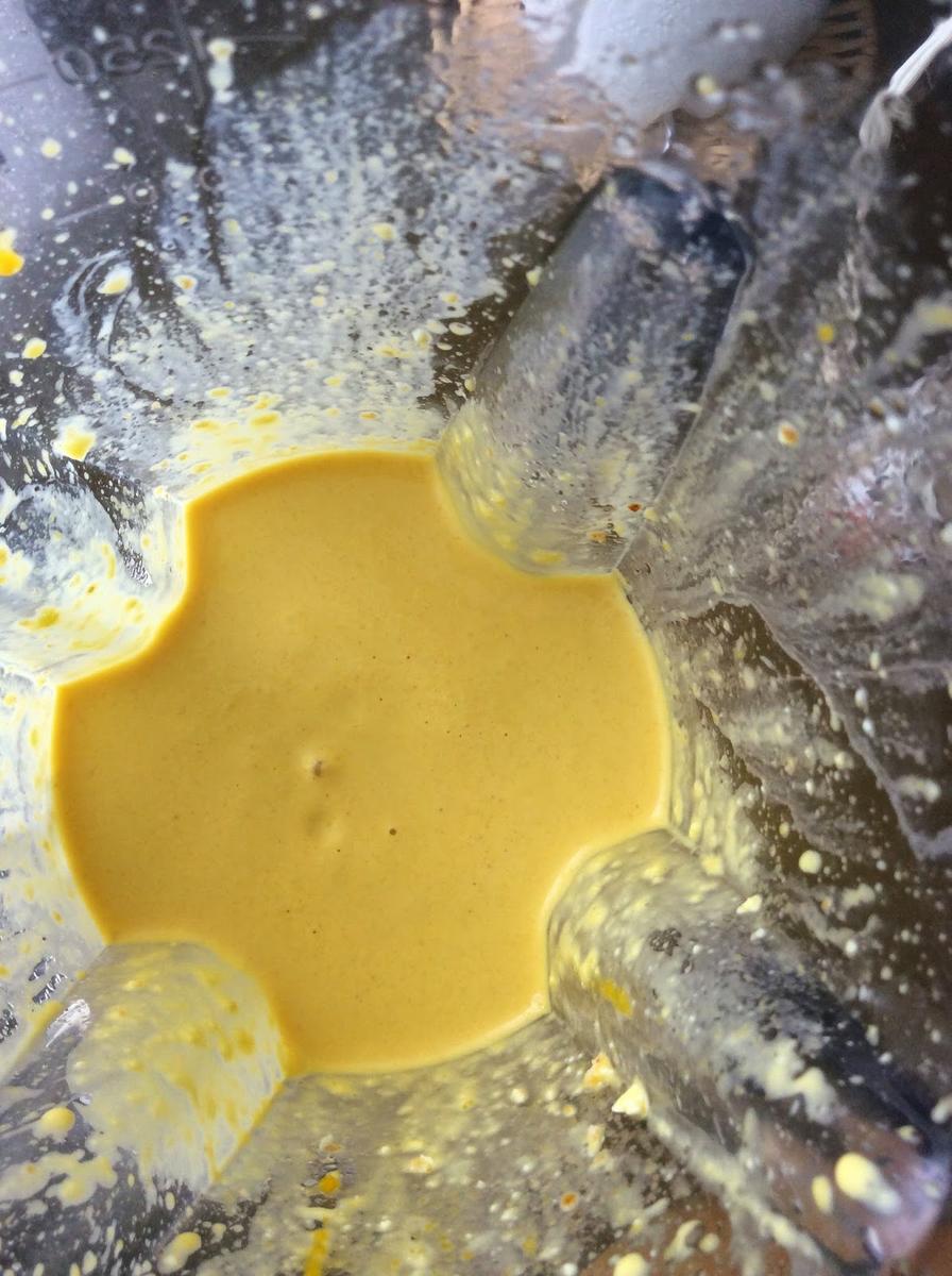 Retiramos de la sartén, quitándole un poco el aceite y lo ponemos en el vaso de nuestra batidora o Thermomix.