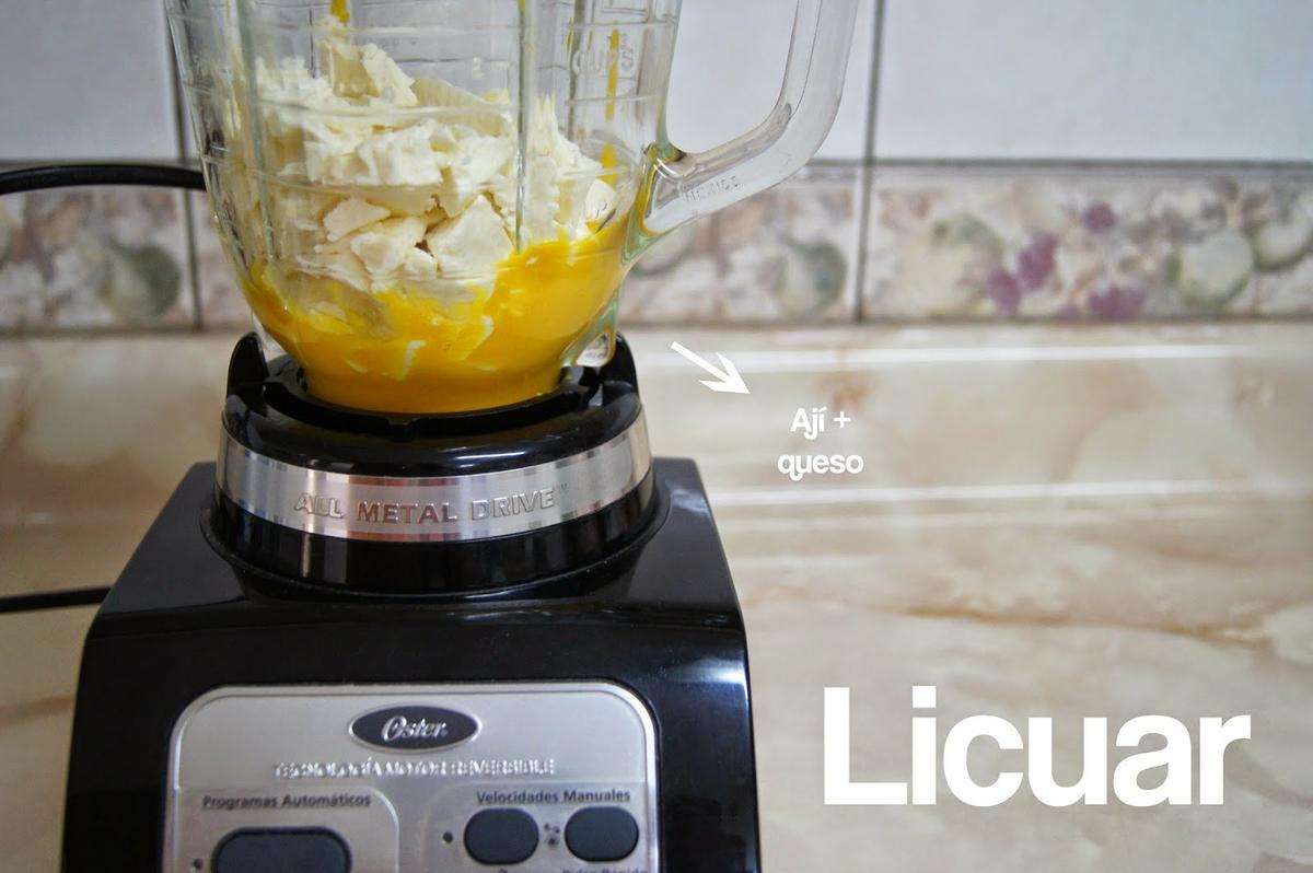 La salsa huancaína es mi favorita y creo que el secreto para que quede rica es el queso. No recomiendo utilizar quesos pasteurizados ya que son bajos en sal. El queso de cabra en mi opinión es la mejor opción ya que aporta más sabor. Esta salsa se prepara también con aderezo, pero yo estoy acostumbrada a comerla sin aderezo. La cantidad de los ingredientes dependerán de la textura que se quiera lograr. Si el queso no es suficientemente salado, se le puede agregar sal. Para la pasta, herví los ajíes, les saque las pepas y la piel y los licue con aceite. Tradicionalmente, la salsa huancaína se sirve con papa, lechuga, aceituna y huevo aunque últimamente se está sirviendo con fetuccinis y diversas pastas.