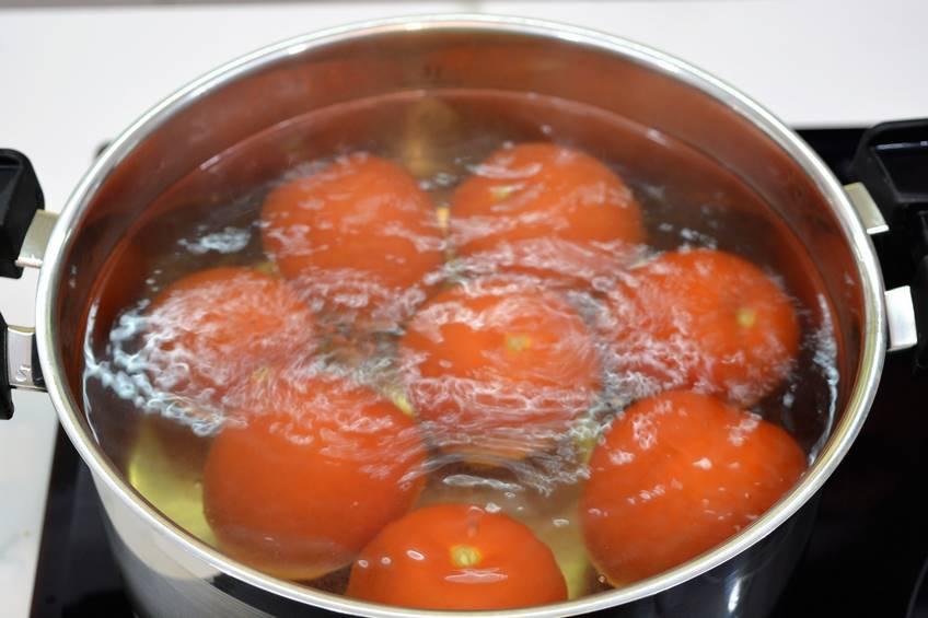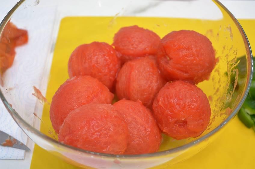 Paso 4 Mientras se va haciendo la verdura, pelamos los tomates con cuidado. Vais a ver que la piel sale realmente fácil.