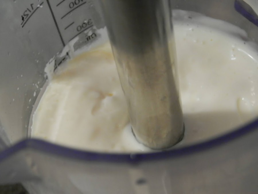 Pon la batidora en el fondo y deja en el fondo un poco para que todo bata.