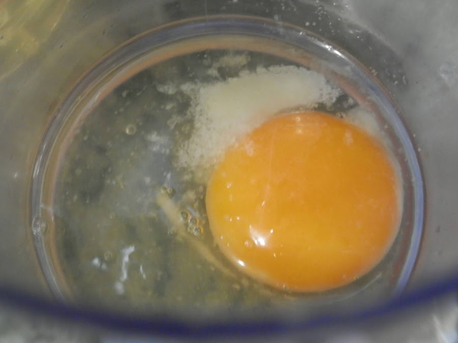 En primer lugar, echa la sal y el huevo en el vaso de la batidora.