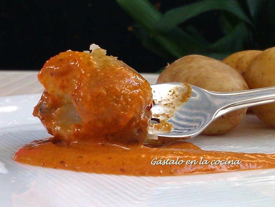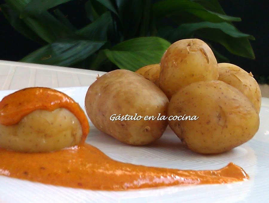 Esta vez sólo voy a poner la receta de la salsa ya que las patatas (las papas para los canarios) no se arrugaron. Estas patatas godas no sirven para eso..