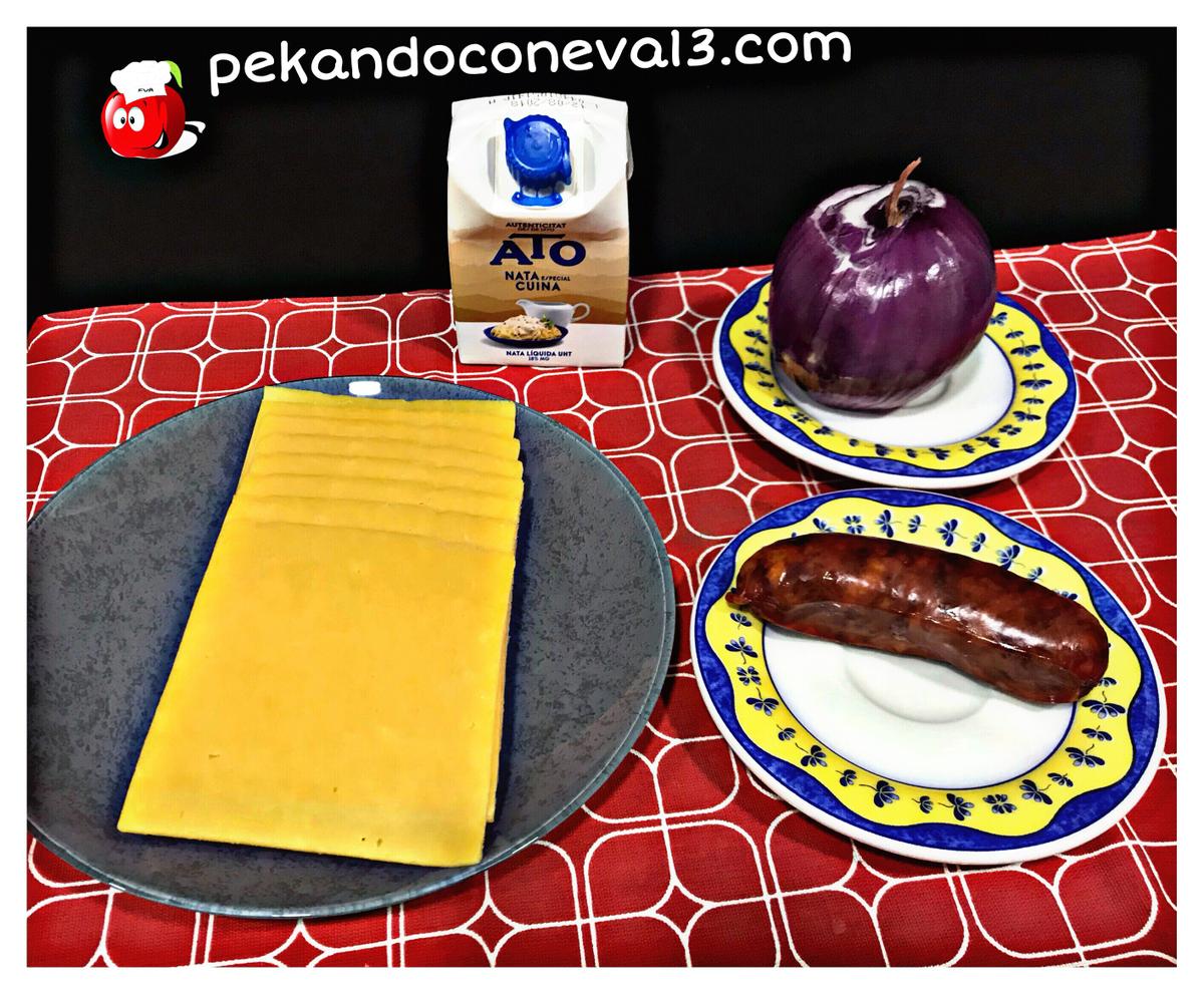 Le hacemos un par de cortes al chorizo y lo metemos unos segundos al microondas para que suelte la grasa. (Eso sí tapar el chorizo, porque a mi aunque lo leí en la receta se me olvido y la que lie en el micro no fue pequeña, jajajja)