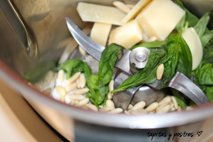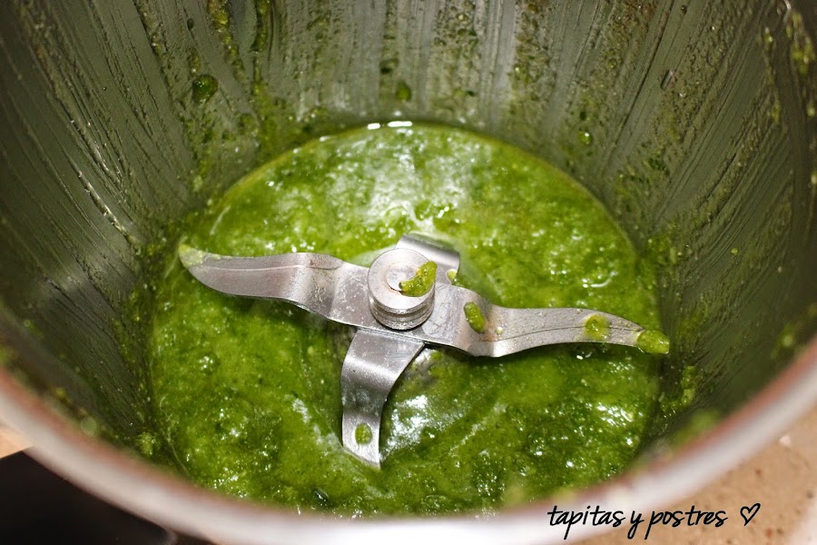 No es que quiera hacerme la interesante o mantener el suspense, es que creo que son recetas o platos que merecen su propia entrada, y esta salsa pesto es tan divina... Se prepara en 40 segundos, y la podemos usar en varias recetas, tanto de pasta, como de carnes o ensaladas.