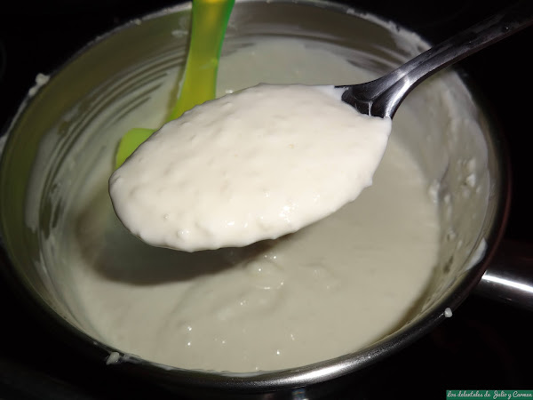 Removemos y dependiendo de como nos guste la salsa (mas o menos espesa) verteremos mas o menos nata (crema de leche). Probamos y rectificamos de sal (o echamos mas queso rallado) al gusto.