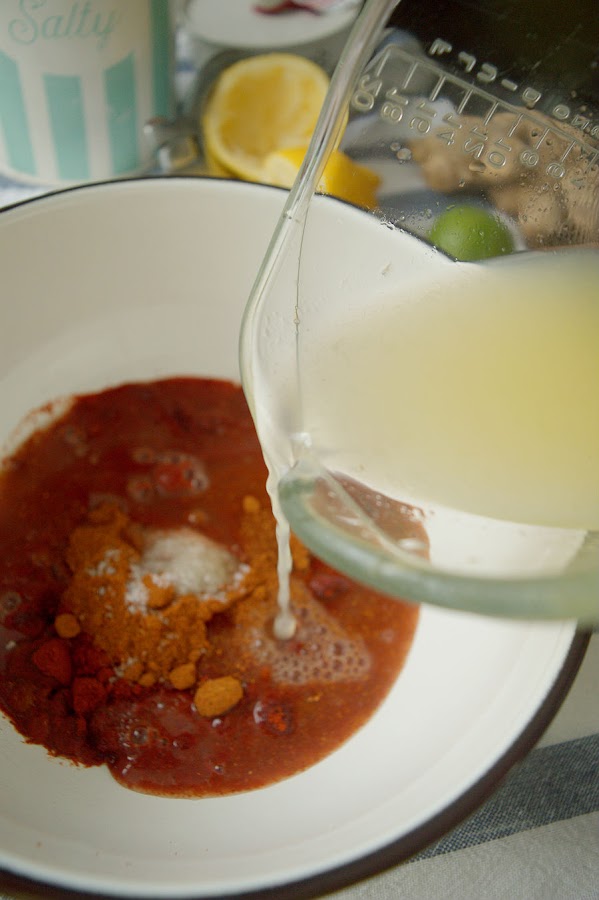 Pour lemon juice, freshly squezzed.