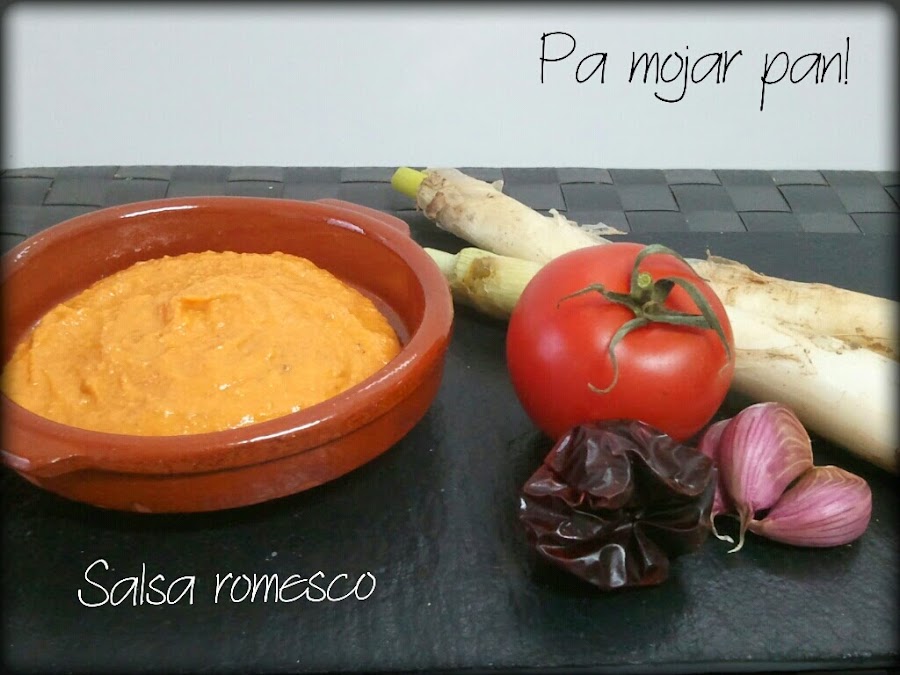 La salsa romesco es una salsa típica y de origen catalán, más concretamente de la provincia de Tarragona. Se utiliza para acompañar tanto carnes como pescados o verduras. Por supuesto es la salsa ideal para degustar unos buenos calçots (variedad de cebolla tierna típica de Cataluña) o unos espárragos trigueros hechos a la brasa.