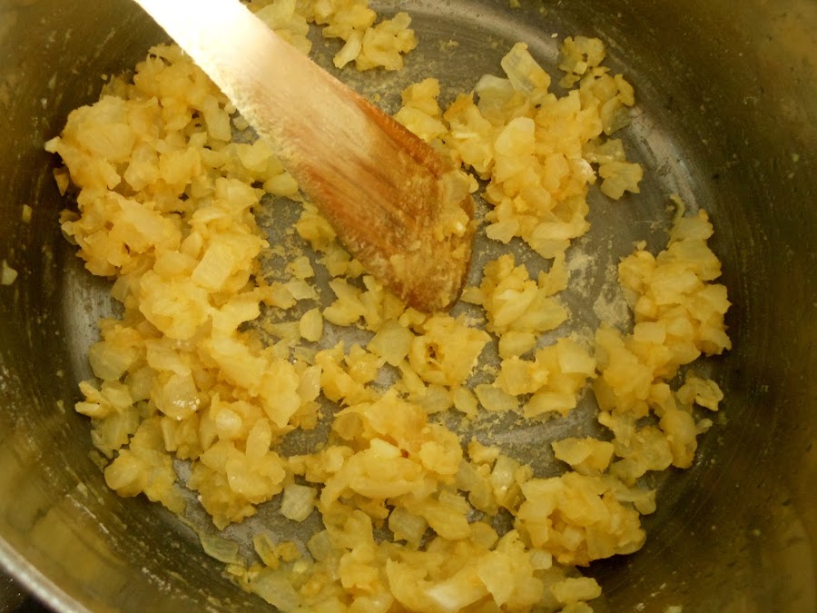 Cuando el aceite esté caliente, añade la cebolla picada junto a una poquita de sal fina, remueve con tu cuchara de madera, tapa la cacerola con su tapadera y deja que la cebolla se ablande por espacio de 15 minutos o hasta que esté tierna.
