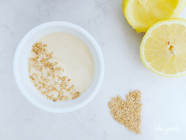 Lo primero que vamos a hacer es preparar los utensilios y los ingredientes. Exprimimos el zumo de medio limón y lo colamos con ayuda de un colador o tamiz en un bol. Agregamos la tahina, el agua y mezclamos. Para terminar le añadimos la sal al gusto y removemos para que e integre bien.