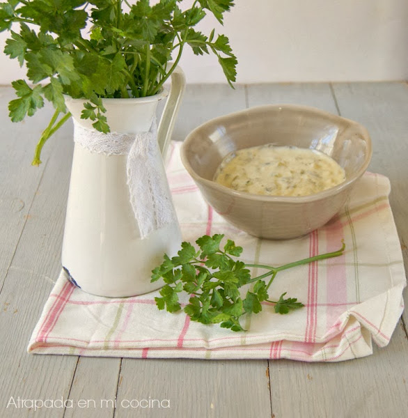 Picamos finamente la cebolleta, los pepinillos y las alcaparras. Mezclamos todo bien. Añadimos perejil picado. Removemos bien e introducimos en el frigorífico al menos unas dos horas. Si queréis podéis también añadirle un poco de mostaza, le aportará un poco más de color y sabor a la salsa, aunque yo no lo hice.