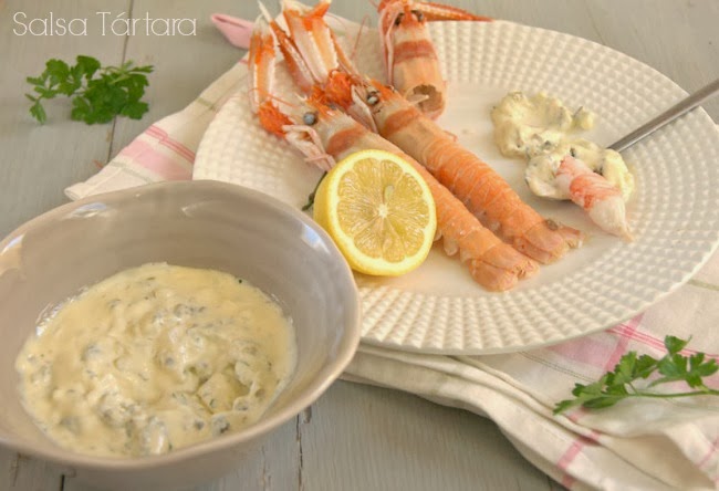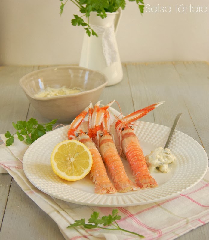 Si os digo que es la primera vez que preparo la salsa tártara no os lo vais a creer, ni yo misma entiendo cómo he podido dejar que pasara tanto tiempo sin probar a hacerla en casa. Pero cuando vi estas cigalas den el mercado no pude resistirme a comprarlas y pensé que eran tan bonitas que se merecían un acompañamiento de lujo. Esta salsa es una salsa que va con el marisco en general, con pescados ahumados, como el salmón, con frituras de pescado, con pescados al vapor, aunque también puede acompañar verduras o carnes. La he visto preparada de muchas formas, con mostaza, sin ella, con huevo duro, sin él, con vinagre, sin él, con aceitunas, sin ellas, con yogur griego, sin él. Mi versión es muy básica, pienso que es la mejor forma de hacerla a la primera. Y las siguientes veces ir añadiendo más ingredientes si lo consideráis necesario, aunque para mi está perfecta sin nada más