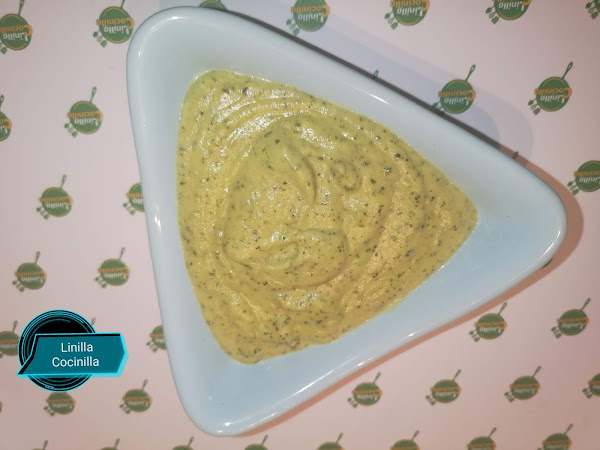 3. Mezcle 3 min/vel 4 y con la máquina en marcha, vierta el aceite de oliva lentamente sobre la tapa, dejando que caiga un hilo muy fino alrededor del cubilete para lograr una emulsión. Sirva o vierta en un tarro y conserve en el frigorífico.