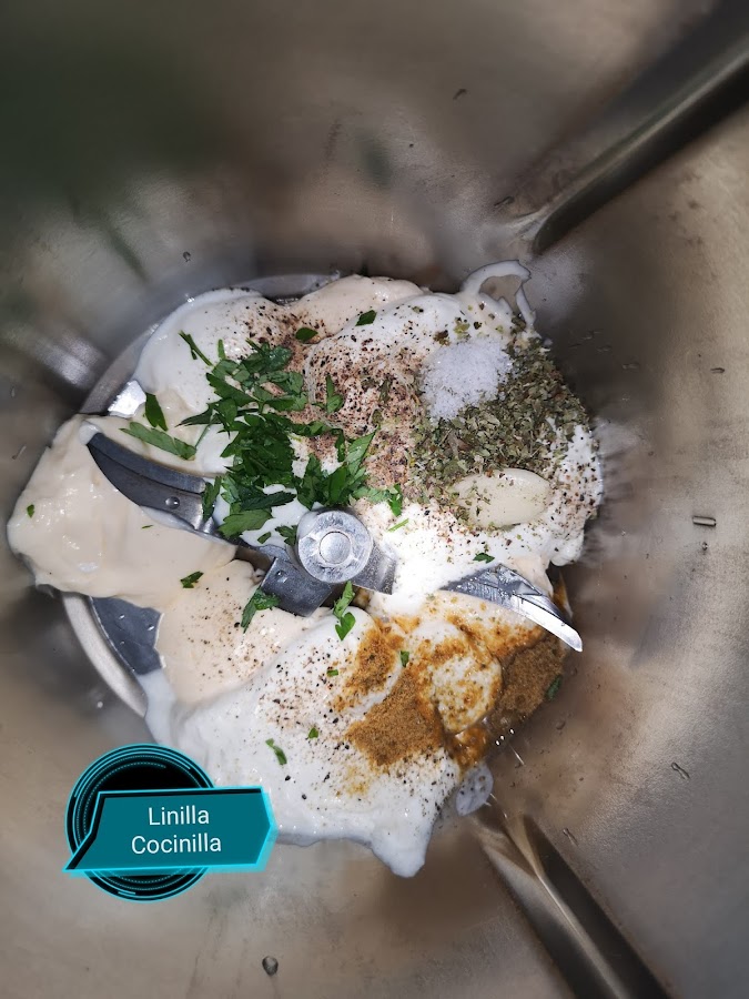 1. Ponga en el vaso todos los ingredientes de la salsa y programe 5 min/varoma/vel 2. Retire a un bol y reserve.
