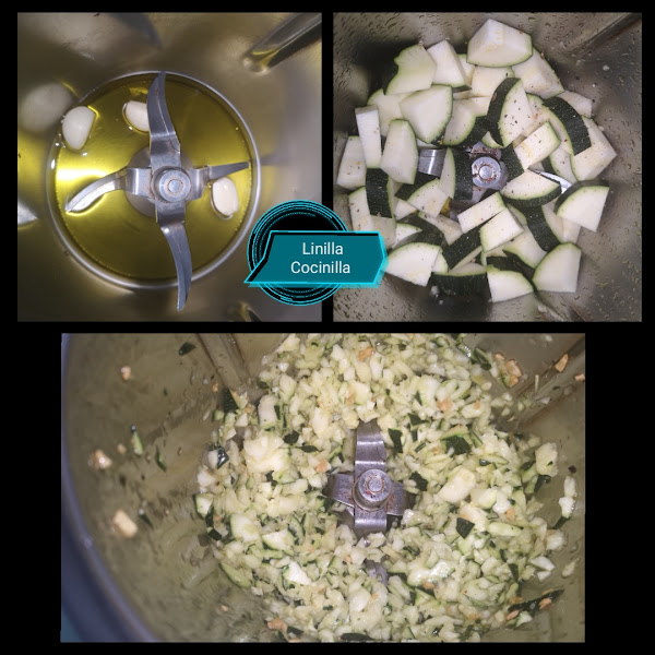 2. Añada el calabacín y la pimienta y trocee 2 seg/vel 5.