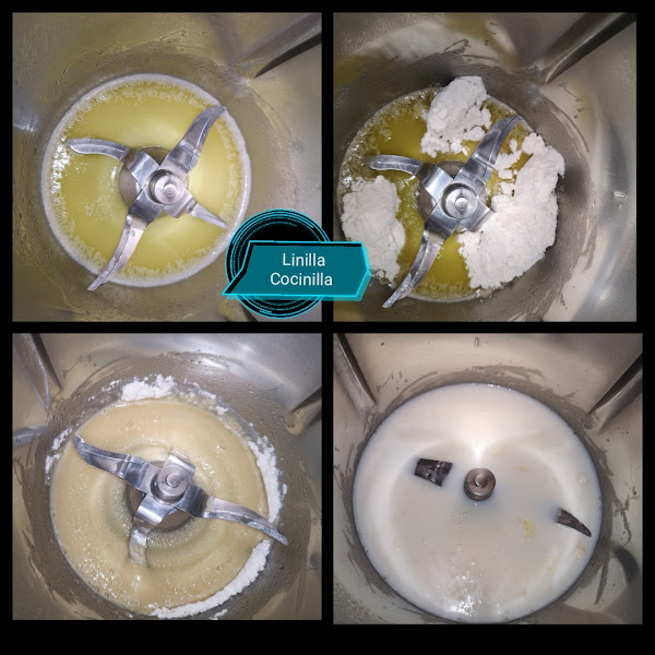 2. Ponga en el vaso la mantequilla y la harina. Rehogue 2 min/120ºC/vel 1.